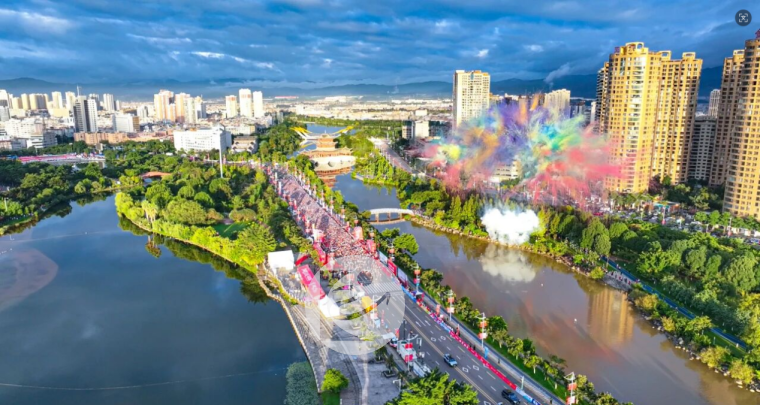 今年的赛道藏着太多巧思!组委会特意优化路线,删减陡坡路段,全马累计爬升降至89米,半马更是低至59米,让跑者能更轻松地拥抱风景。从聂耳音乐广场出发,脚步掠过玉溪大河的粼粼波光,途经青花街的烟火市井,抬头可见红塔山的巍峨剪影,转角遇见高原体育运动中心的现代活力。