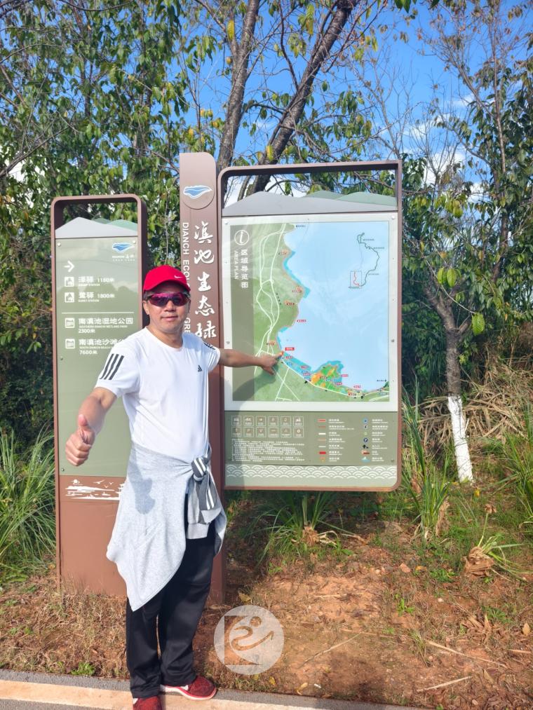 本次徒步路线沿滇池湖畔蜿蜒铺开,冬日景致美不胜收:澄澈湖面波光粼粼,冬日暖阳洒在水面泛起粼粼金辉,与远处青翠山峦相映成趣;岸边冬草泛黄与翠绿植被交织,栈道穿林而过,偶有水鸟低飞掠过水面,构成一幅灵动的冬日生态画卷。