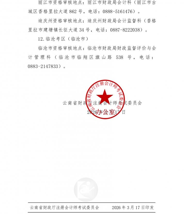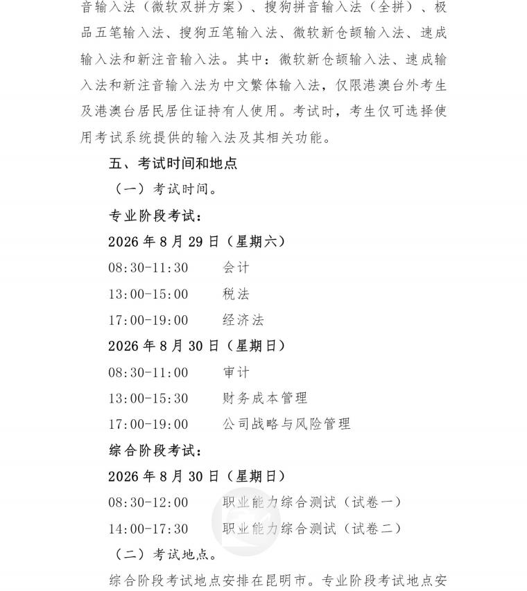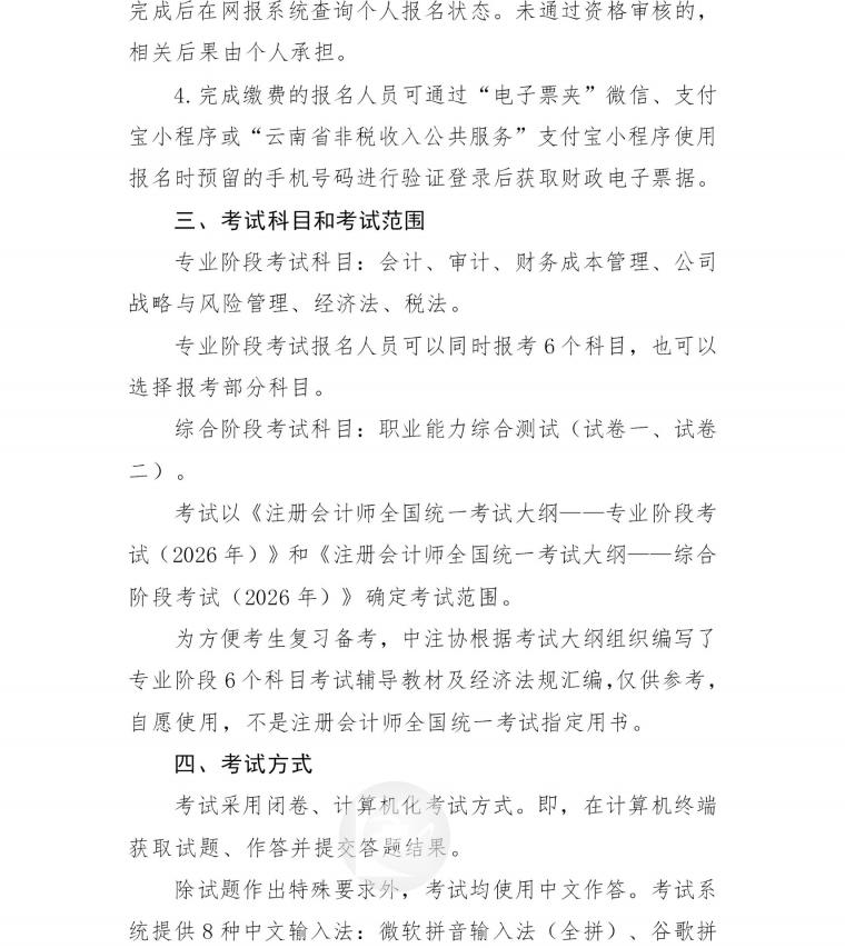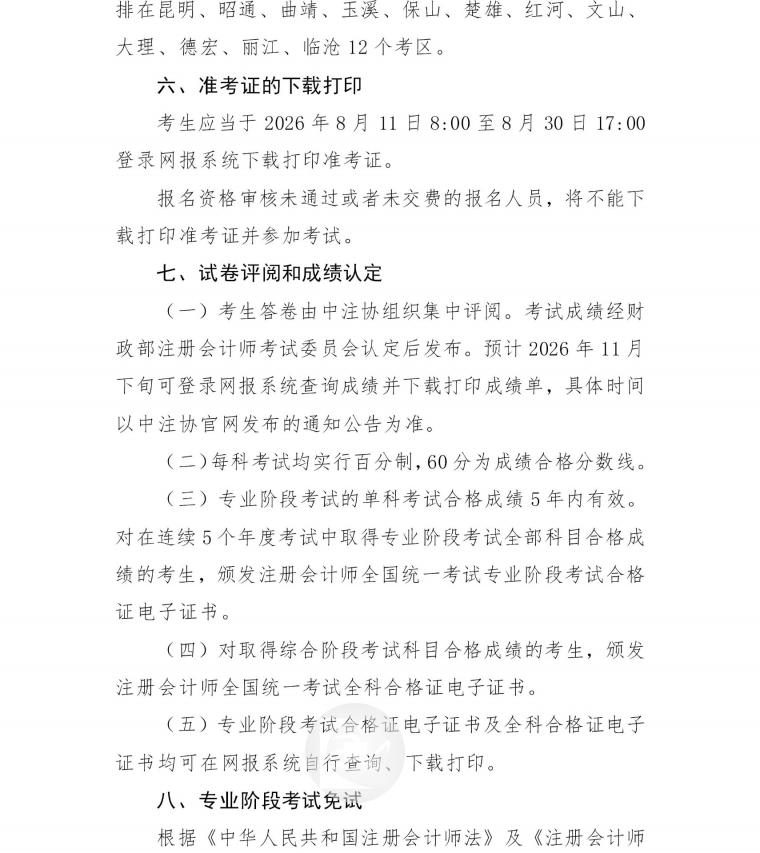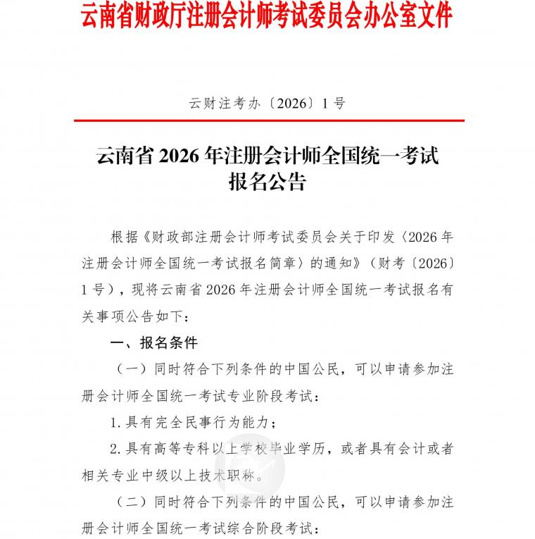 云南省2026年注册会计师全国统一考试报名公告